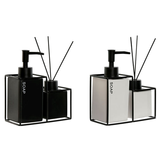 Set de Baño Home ESPRIT Blanco Negro Metal Dolomita 14,5 x 8 x 17 cm 2 Piezas (2 Unidades)